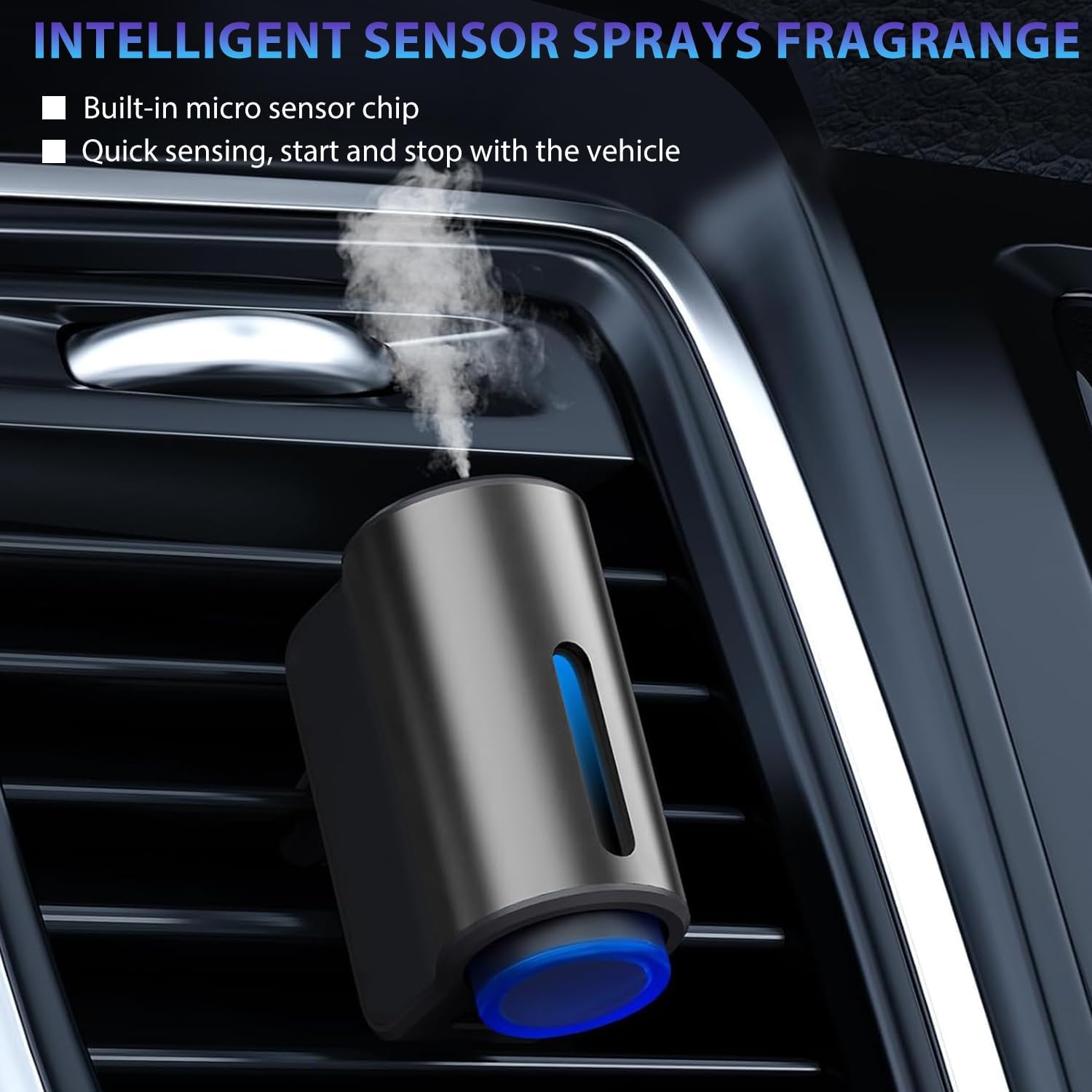 - 3 режима распыления: Умный ароматизатор для автомобиля оснащён подсветкой. Зелёный цвет лёгкий аромат распыление 0,2 с каждые 300 секунд. Синий цвет стандартный режим распыление 0,2 с каждые 90 секунд. Фиолетовый цвет интенсивный аромат распыление 0,2 с каждые 10 секунд.