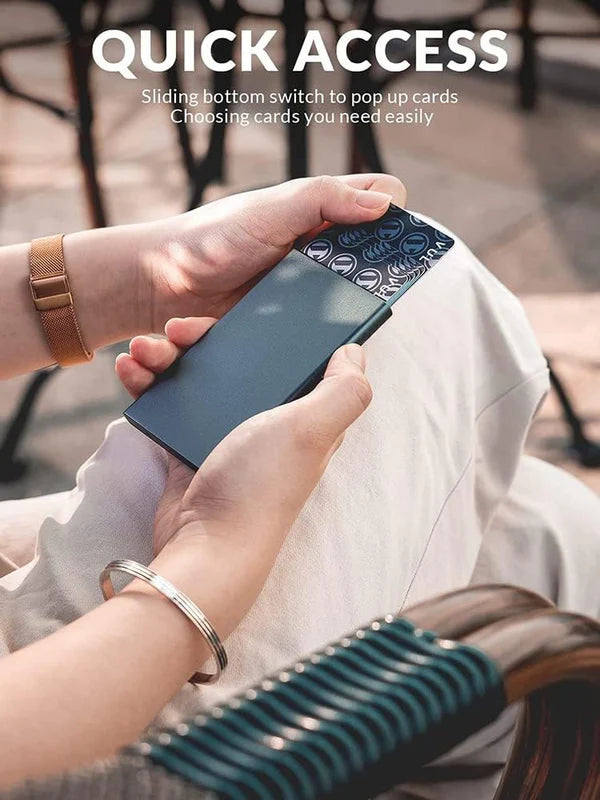 • Спокойствие в пути: незаменимый аксессуар для отпуска, поездок за границу или пользования переполненным общественным транспортом. Будьте в безопасности и защищены в любое время с этим надёжным держателем для карт.
