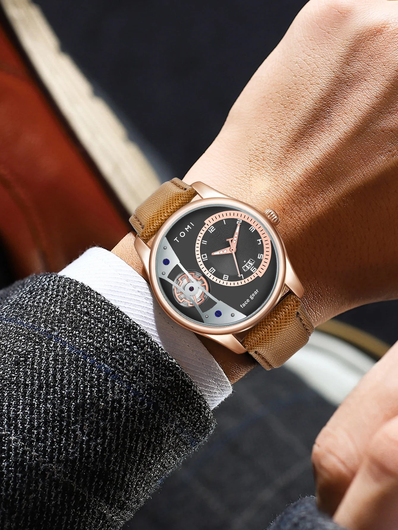 - Уникальная концепция циферблата : Оригинальный циферблат с нестандартным расположением элементов придаёт часам индивидуальность. Каждая деталь продумана, чтобы привлечь внимание и подчеркнуть характер владельца.
