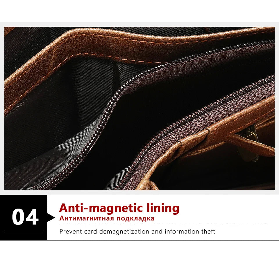 • Защита RFID : это кошелёк, который предотвращает считывание банковских карт, специально разработан для блокировки RFID-сигналов и защиты от электронных краж. Он предотвращает несанкционированное сканирование карт и сохраняет ваши средства в безопасности.