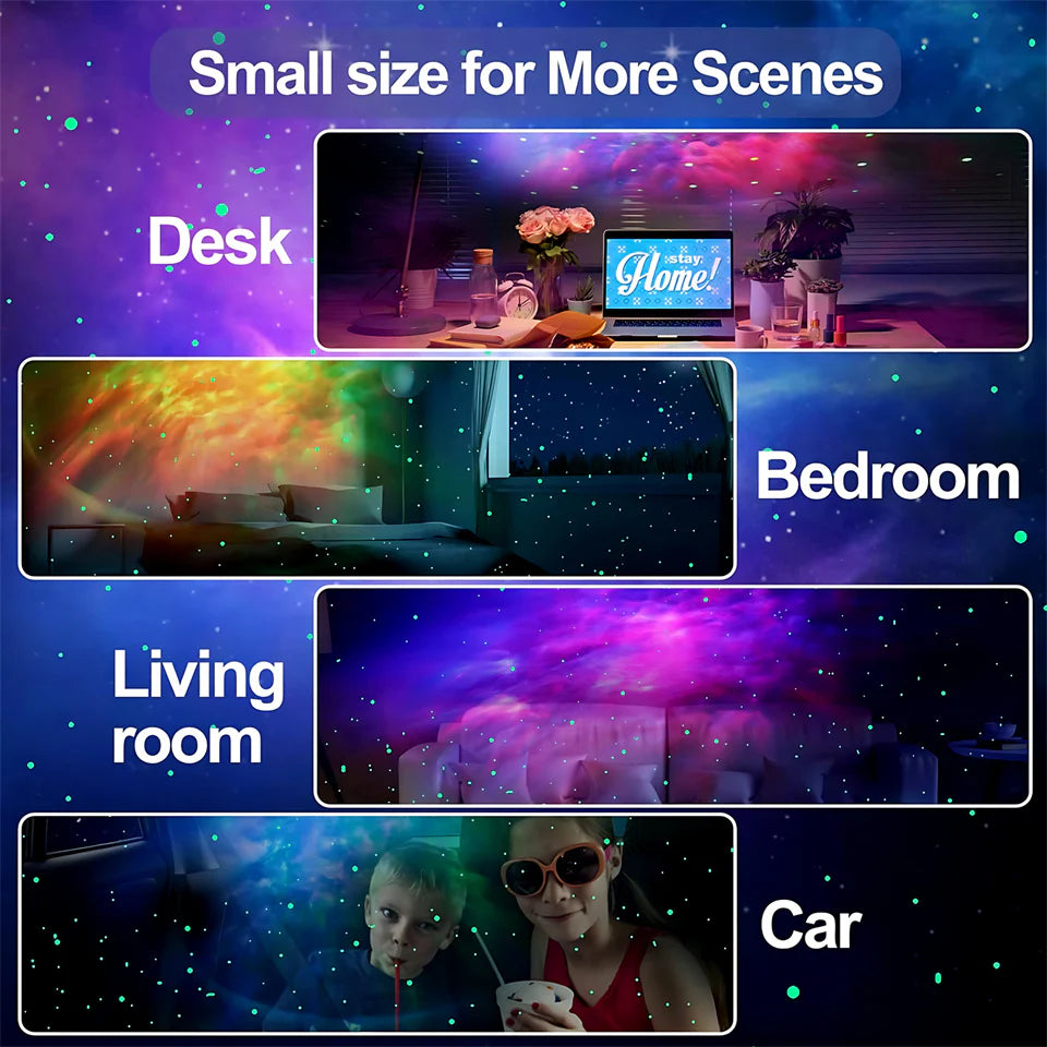 - Ультратихий ночник-проектор звёздного неба для детей : наш ночник оснащён пультом дистанционного управления, благодаря которому вы можете расслабиться и создать своё пространство мечты. Его уникальный внешний вид делает его красивой игрушкой или стильным украшением. Если вы используете его в детской, можно поставить проектор у двери, не беспокоя ребёнка. Когда проектор включён, он создаёт спокойную атмосферу, способствующую лучшему сну ребёнка или взрослого.