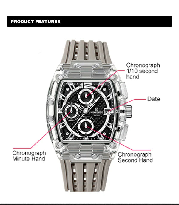 - Профессиональные кварцевые часы : высококачественный японский кварцевый механизм с аналоговым отображением и несколькими циферблатами обеспечивает точное время.