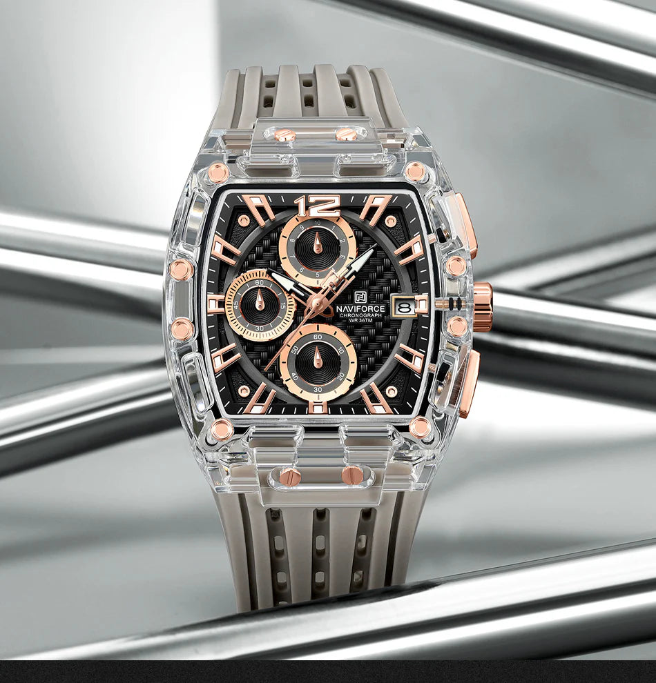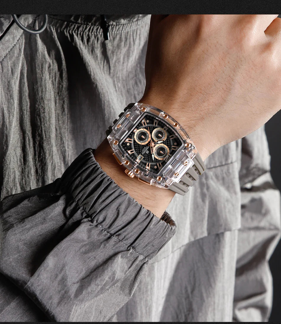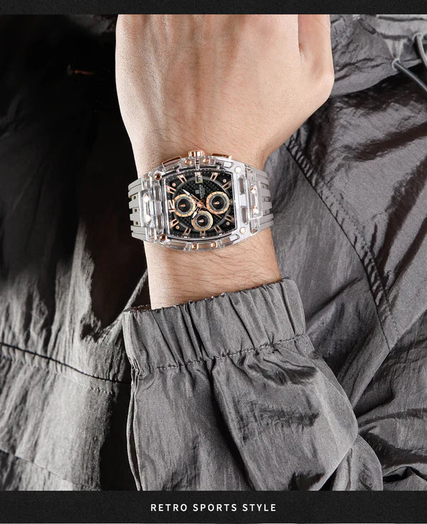 Прозрачные мужские часы в форме бочонка