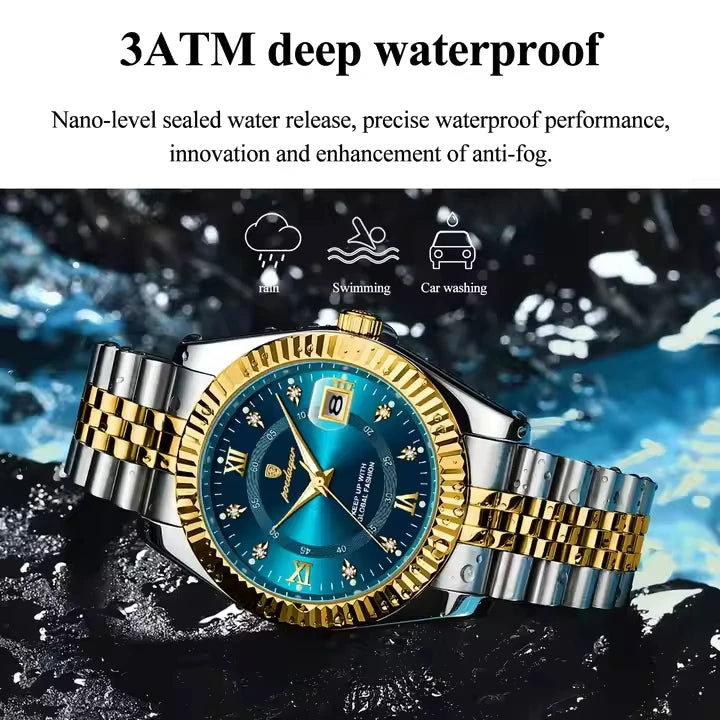 • Водонепроницаемость : Часы надёжно защищены от влаги, что позволяет носить их без опасений при любых погодных условиях. Они сохраняют свою точность и внешний вид даже при контакте с водой.
