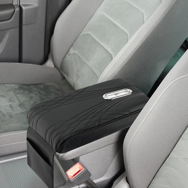 • Выбранный материал: подлокотник оснащён прочной эластичной сетчатой основой и высококачественной кожаной обивкой, устойчивой к износу и выцветанию. Подушка сохраняет форму и не деформируется. Она обеспечивает комфорт и надёжную поддержку во время вождения.