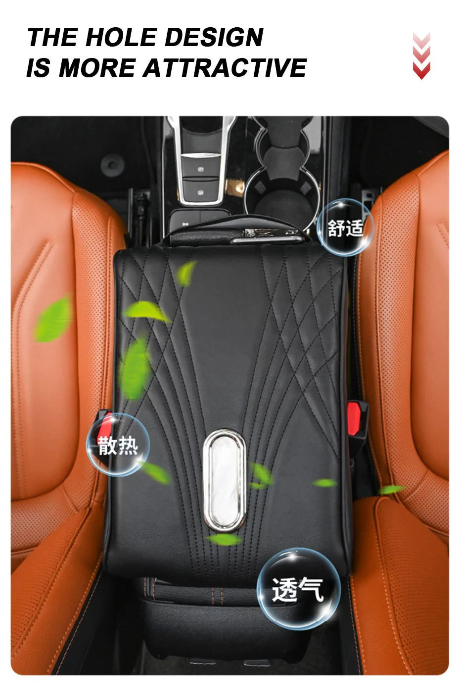 • Уникальное отверстие для салфеток: этот подлокотник имеет специальное отверстие для бумаги, которое позволяет легко доставать салфетки, не открывая крышку. Оно также защищает бумажные салфетки от загрязнения или повреждений, сохраняя их в чистоте и порядке.