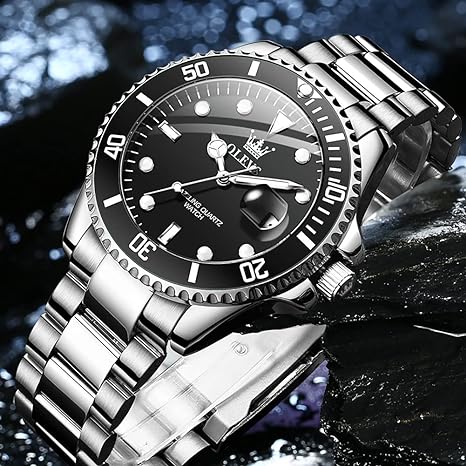 - Классический дизайн : Мужские часы OLEVS имеют уникальный циферблат и односторонний вращающийся безель в сочетании с ремешком, подчёркивающим смелую индивидуальность. Эти элегантные мужские часы оснащены полированным корпусом из нержавеющей стали и ярким чёрным циферблатом, что придаёт необходимый элемент роскоши.