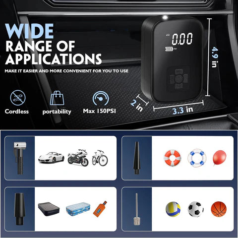 - Быстрое накачивание : Этот насос для шин оснащён высокомощным мотором, он может накачивать шины вашего автомобиля со скоростью 25 л/мин, поднимая давление с 0 до 35 psi за 5 минут.