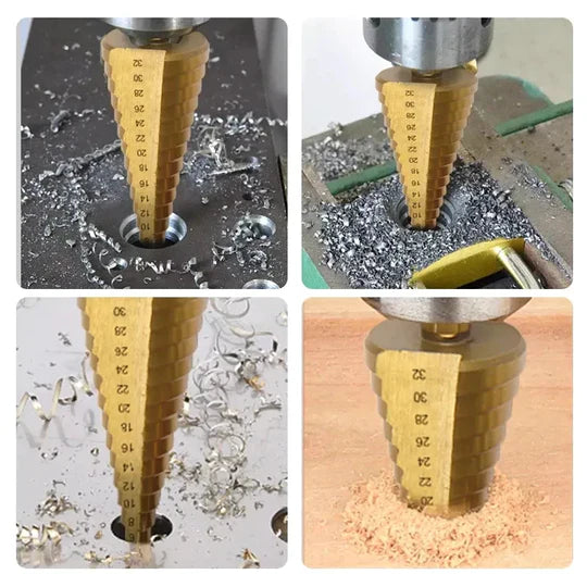 - Очень практичный: комбинированный набор из 6 спецификаций — 3 ступенчатых сверла и 3 зубчатых сверла, удовлетворяет вашим различным потребностям и повышает эффективность работы.