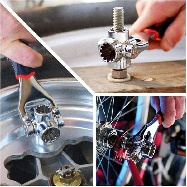 - Компактные торцевые ключи, совместимые с : рифлёными болтами, шестигранниками, двенадцатигранными, Torx, квадратными повреждёнными головками, а также со всеми стандартными и метрическими размерами: 8 мм, 10 мм, 11 мм, 13 мм. Для демонстрации совместимости.