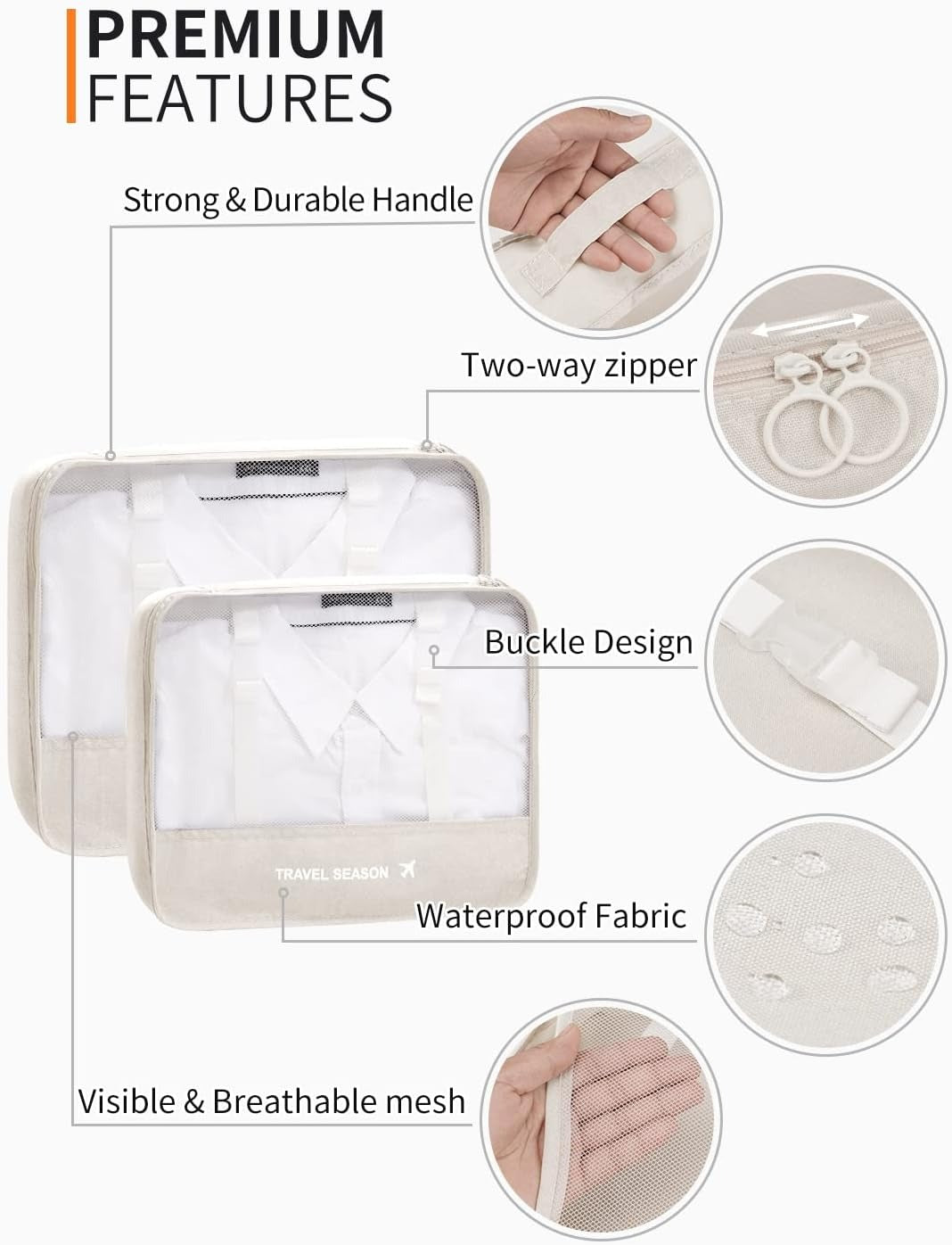 Эти кубы для упаковки сохраняют вещи сухими даже если ваш чемодан или рюкзак намокли. - Устойчивость к разрывам: Аккуратная усиленная строчка и обновлённый материал обеспечивают высокую стойкость к износу во время путешествий.
