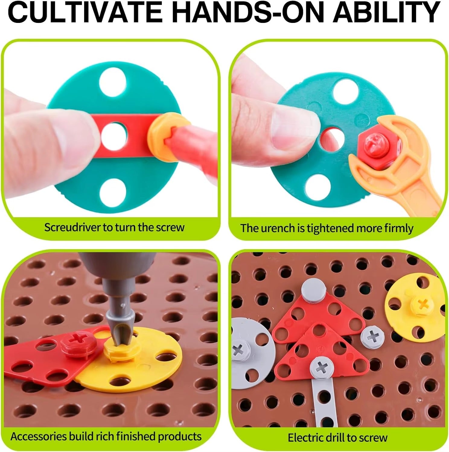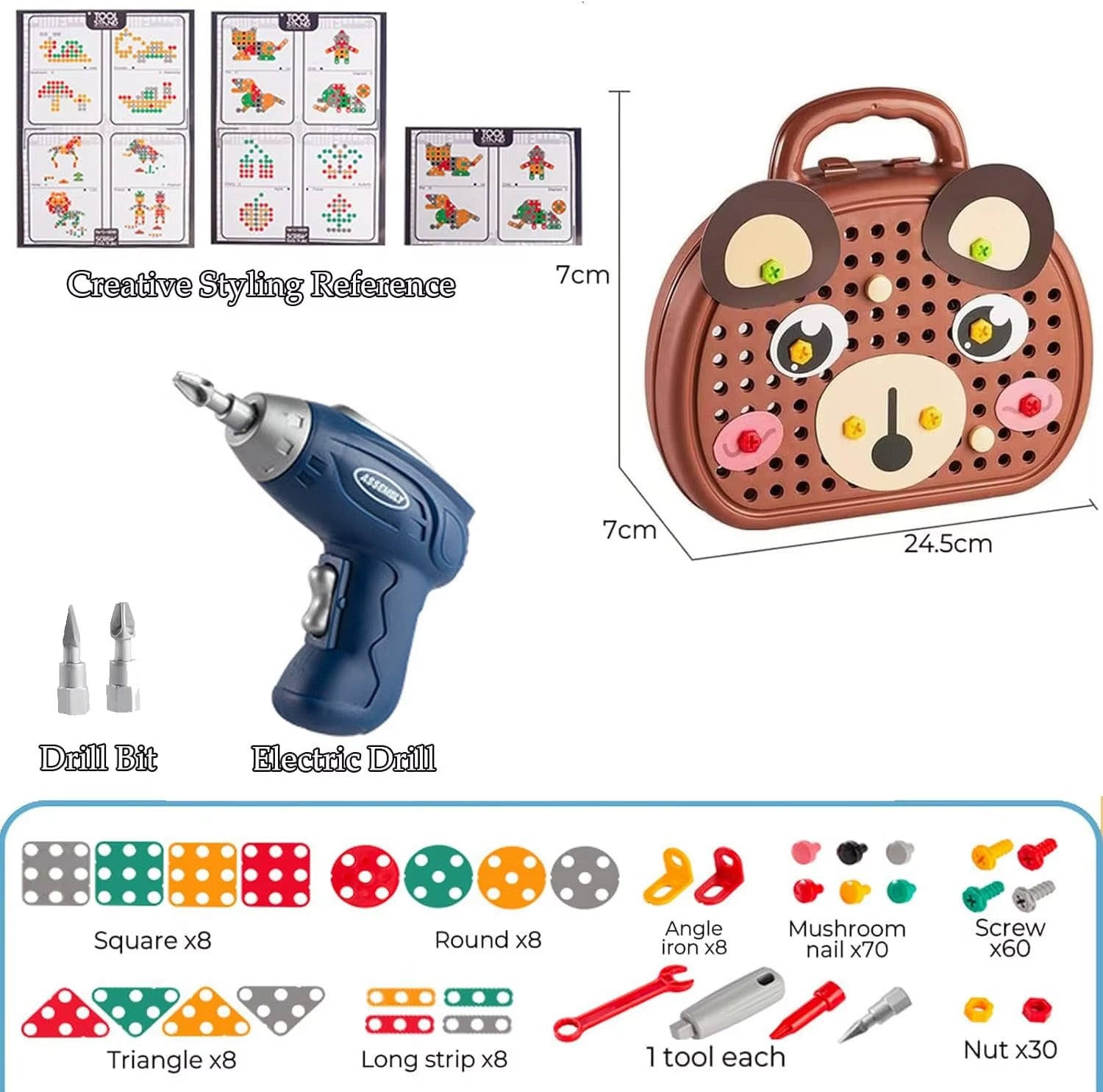 - Реалистичная и увлекательная игра: Набор инструментов создан так, чтобы дети могли почувствовать себя настоящими строителями. Медленно работающий шуруповёрт позволяет малышам безопасно и с удовольствием выполнять свои «проекты», шаг за шагом наблюдая результат своей работы.