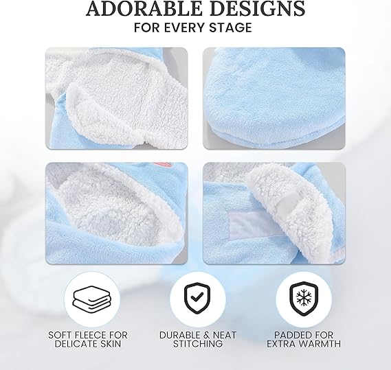- МЯГКИЙ И ДЫШАЩИЙ МАТЕРИАЛ: Сверхмягкий плюш и шерпа обеспечивают уютное тепло, регулируемая застёжка-липучка позволяет изделию «расти» вместе с ребёнком. Дышащий, экологичный и многоразовый дизайн. Универсален для ухода, путешествий и активного отдыха. Унисекс-исполнение в 4 цветах с забавными животными акцентами.
