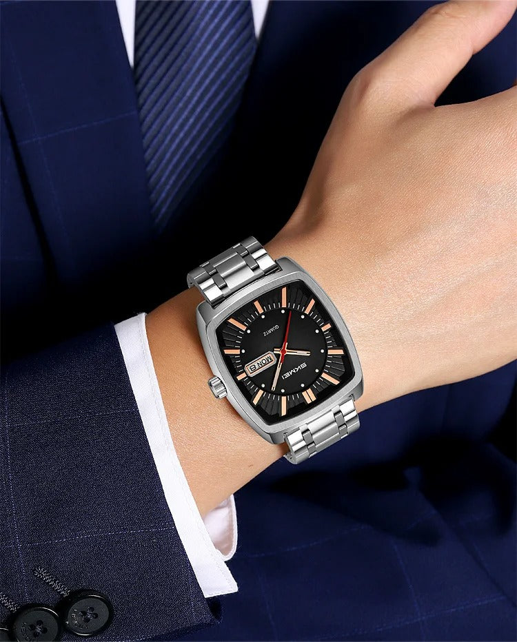 - Стильный и современный дизайн : Эти мужские кварцевые часы выделяются элегантным корпусом и выразительным циферблатом. Уникальная форма придаёт им современный и уверенный внешний вид.