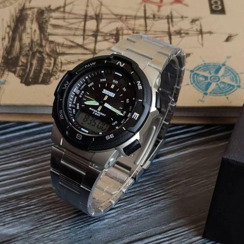 - Удобное комбинированное отображение : Аналоговый и цифровой дисплеи позволяют быстро и легко считывать время. Такое сочетание обеспечивает более гибкое использование и моментальный доступ к нужной информации.