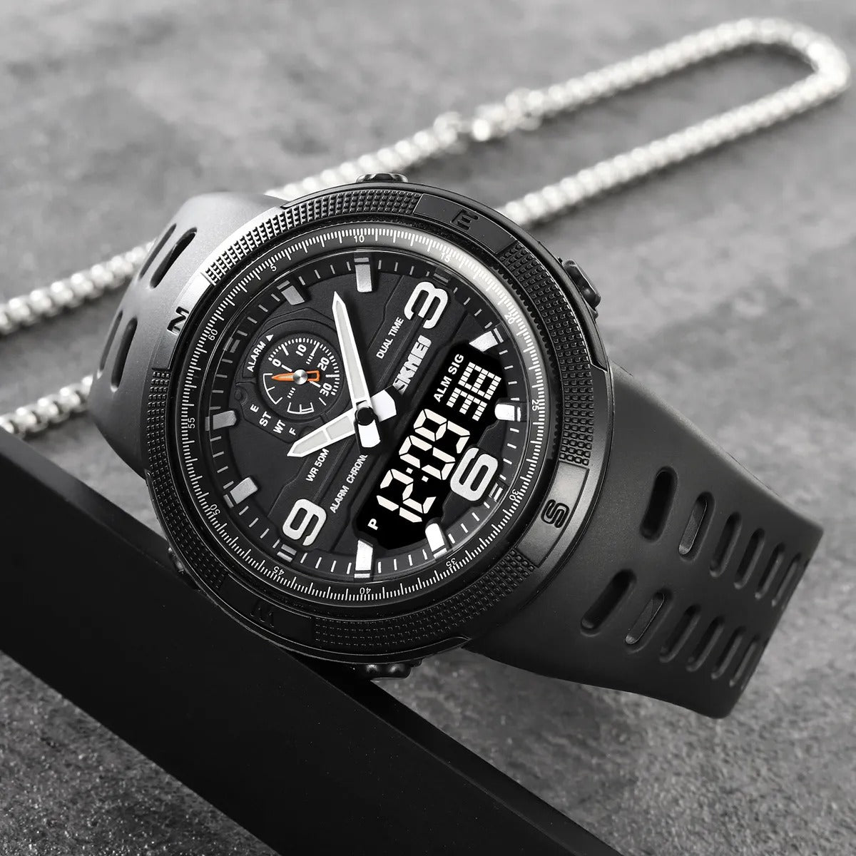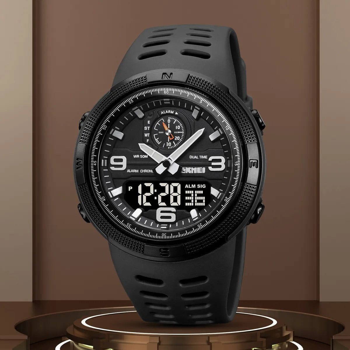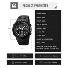 - Спортивный и современный дизайн: Часы SKMEI сразу привлекают внимание своим мощным и современным стилем. Детализированный циферблат с двойным отображением придаёт динамичный и уверенный вид.