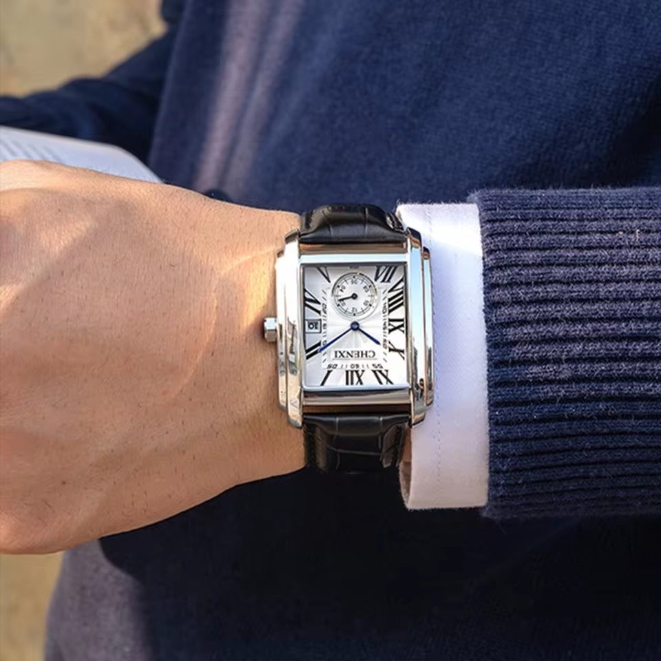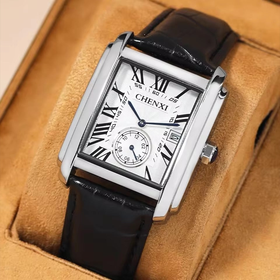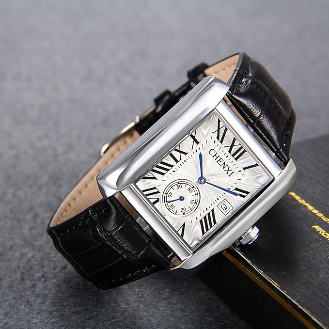 - Общий дизайн : Часы обладают элегантным и выразительным внешним видом. Прямоугольная форма корпуса придаёт модели классический характер, а чёткие линии создают ощущение гармонии и утончённости.