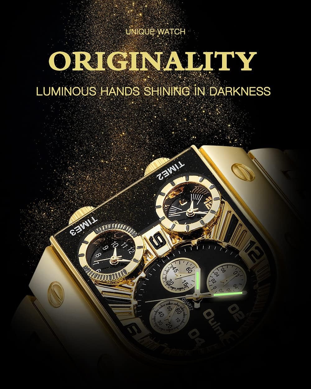 - Смелый и роскошный дизайн: Эти часы сразу привлекают внимание своим ярким стилем и утончённым шармом. Множественные циферблаты и геометричное оформление придают им современный и уникальный вид для тех, кто любит выделяться.