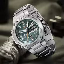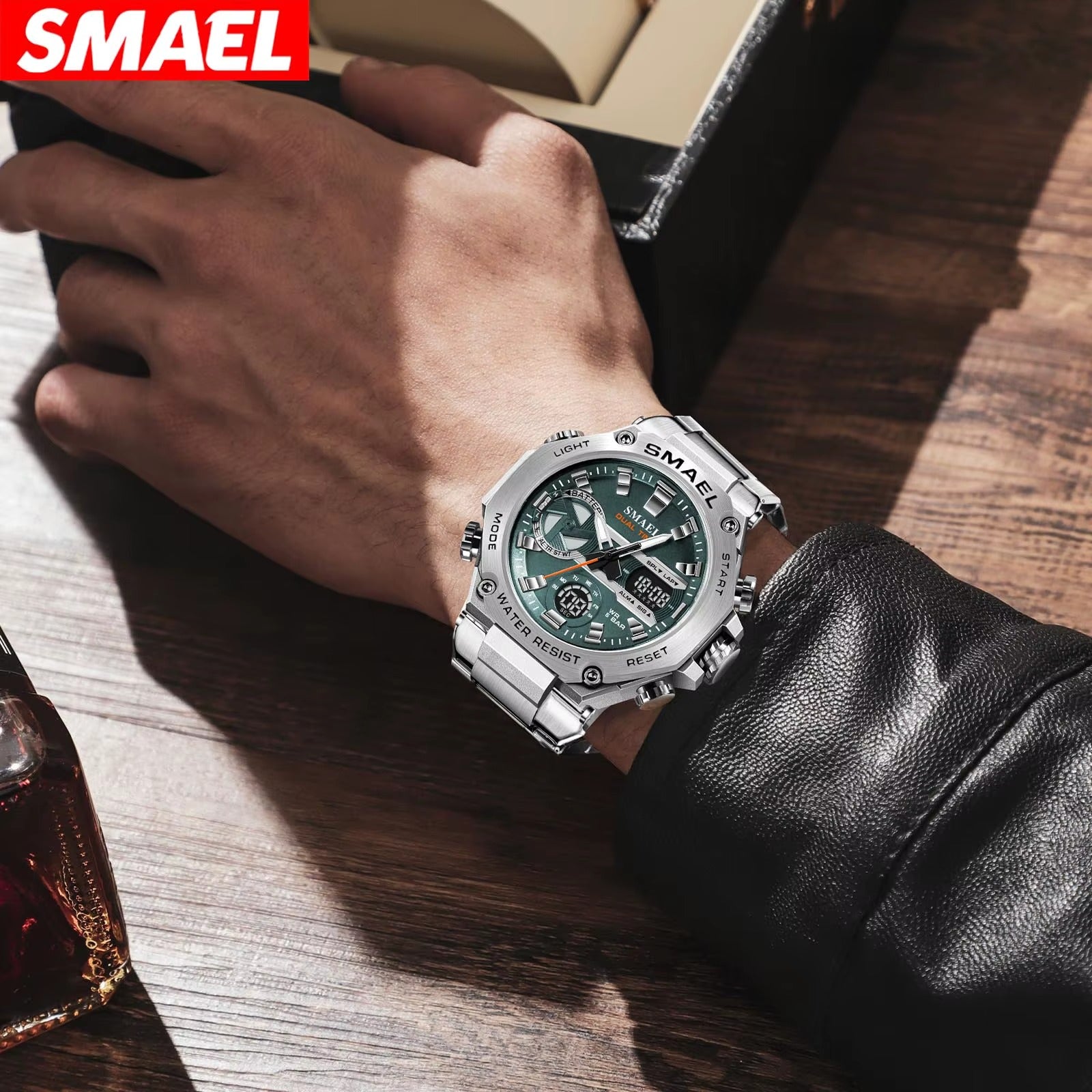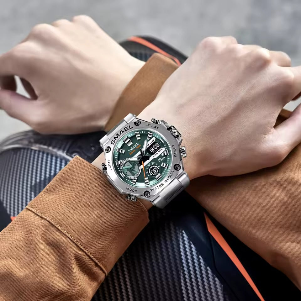 - Удобный двойной дисплей: Модель сочетает аналоговое и цифровое отображение, что позволяет быстро и легко считывать время. Информация на циферблате размещена аккуратно, обеспечивая комфортный визуальный опыт в течение дня.