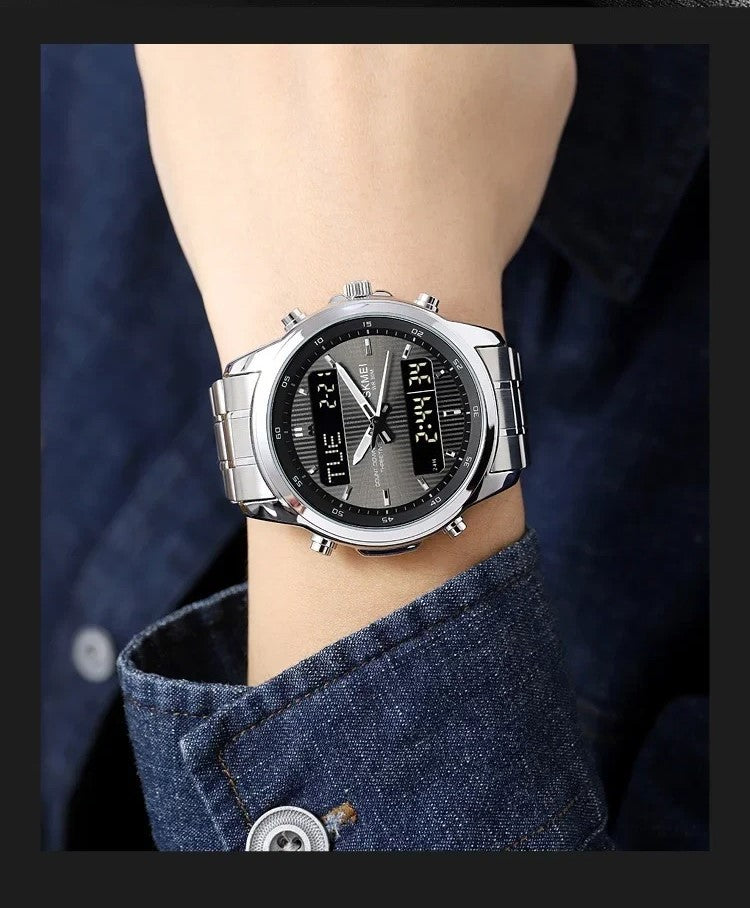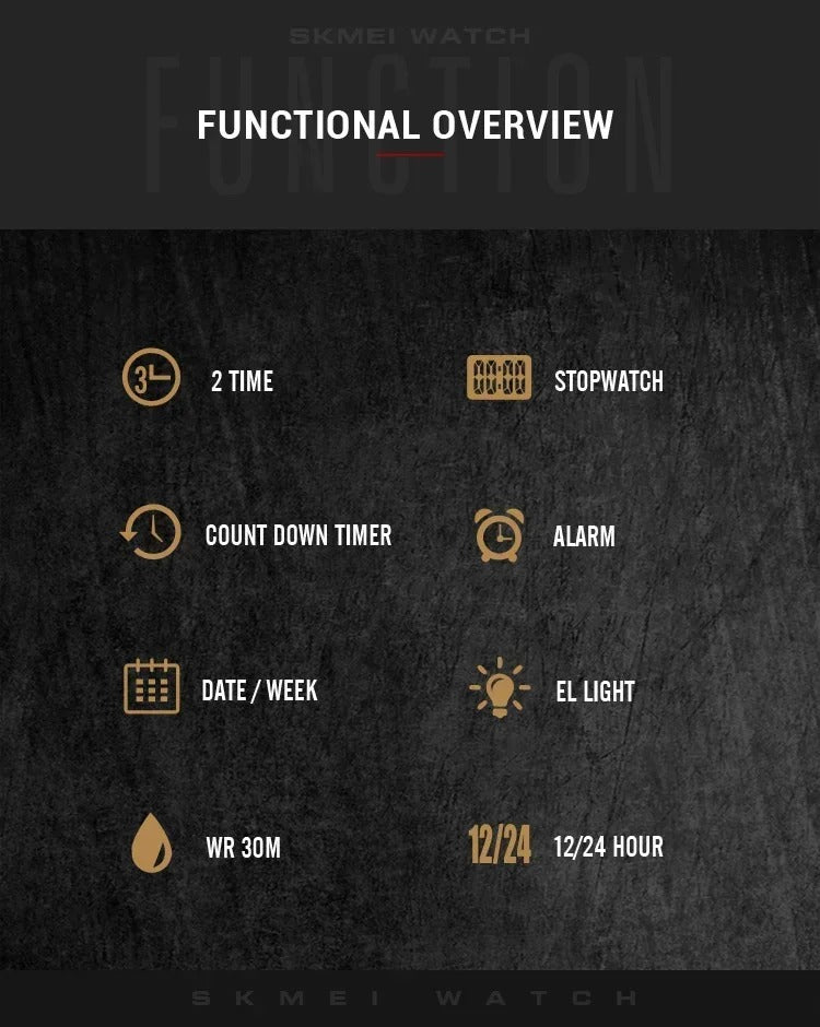 - Множество встроенных функций : Часы оснащены полезными функциями, такими как будильник, секундомер, таймер обратного отсчёта и отображение дня недели. Они идеально подходят мужчинам, ведущим активный образ жизни.