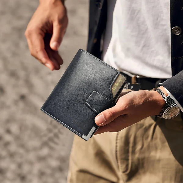 • Практичность: Складной кошелёк сочетает стиль и функциональность. Он продуман до мелочей, чтобы надёжно хранить все ваши предметы первой необходимости — карты, купюры, монеты, фотографии и документы.