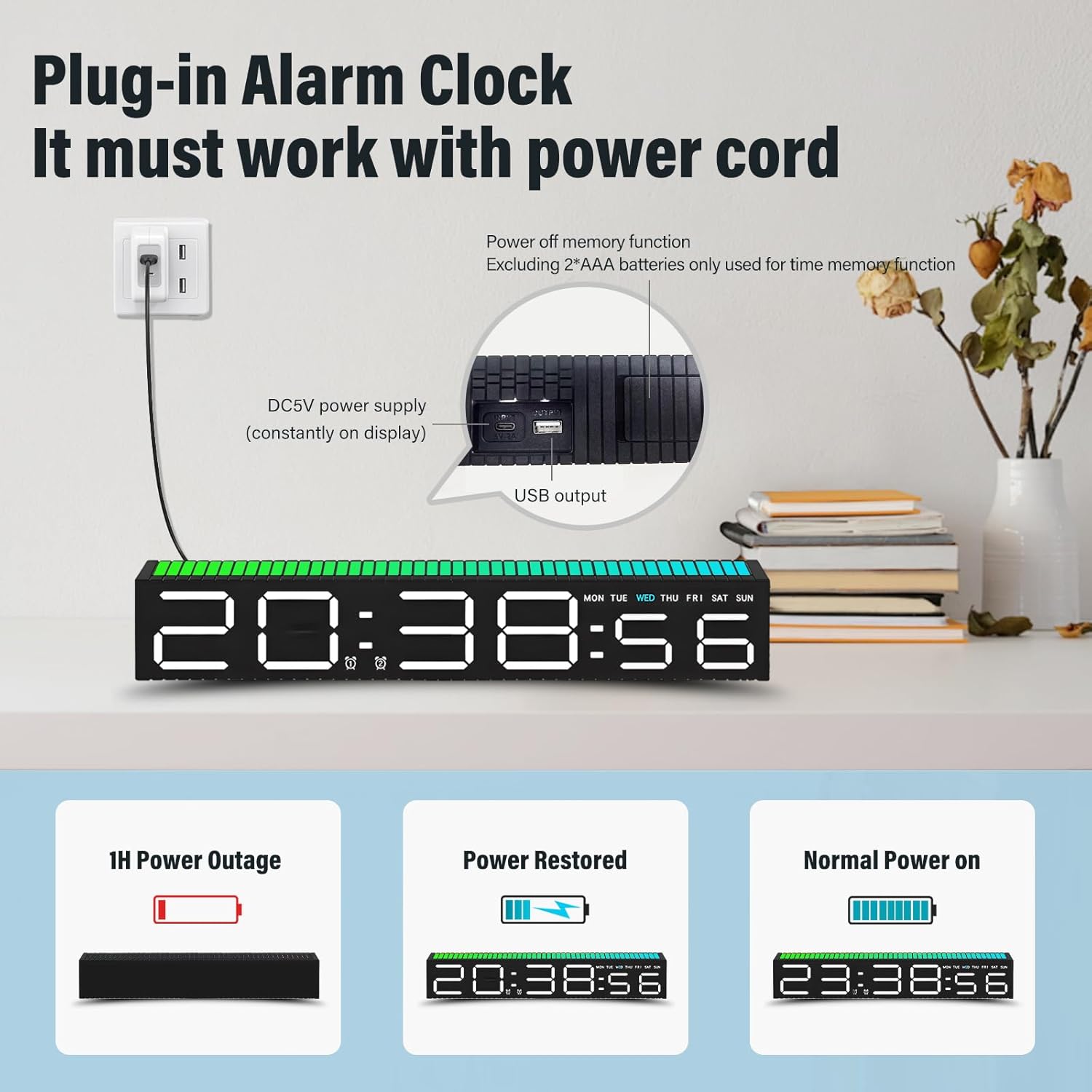 - Современный стиль : Эти цифровые часы отличаются ярко выраженным современным дизайном. Вытянутая форма и чёткие линии придают им элегантный вид, благодаря чему они легко вписываются в рабочее пространство, гостиную или спальню.